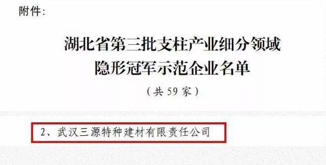 2019年11月28日,湖北省第三批支柱产业细分领域隐形冠军示范企业名单出炉。我公司被湖北省经济和信息化厅评...