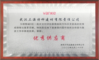 公司从几十家项目参建单位中脱颖而出,获得“优秀供应商”的称号,是合作伙伴给予我们的充分肯定。未来,武汉三源将肩负更大的使命和责任,致力于改善混凝土性能,有效防控混凝土裂缝及防水问题,提升建筑生命力,并不断提升企业在行业内的竞争力、影响力。