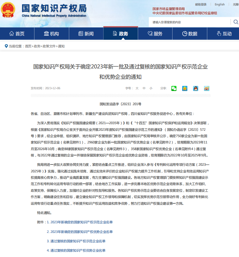 国家知识产权局近日公布了“2023年度国家知识产权示范企业”名单,多盈手机官网荣誉登榜。这是三源在继2022年通过国家知识产权优势企业复核后,在知识产权领域跃进的又一大步。![]()