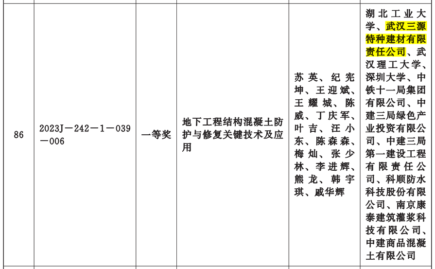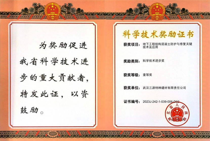 由多盈手机官网与湖北工业大学合作的“地下工程结构混凝土防护与修复关键技术及应用”科研成果,荣膺“湖北省科技进步一等奖”!
