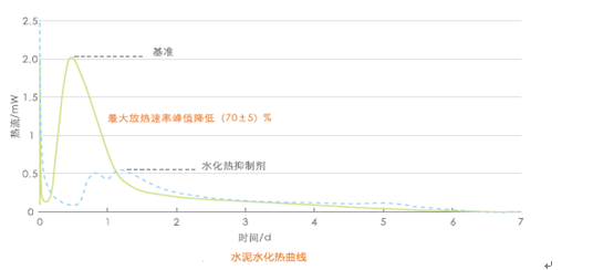 (2) 性能可调控:可根据使用环境条件(地区、温度、湿度等)不同、混凝土结构尺寸不同,设计产品特性,灵活地调控混凝土内部水化历程,满足不同施工条件的各类工程。