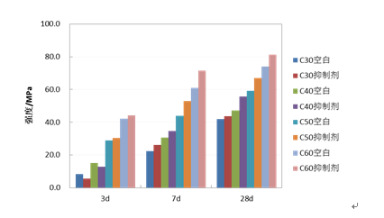 掺加水化热抑制剂及未掺加水化热抑制剂的混凝土强度对比